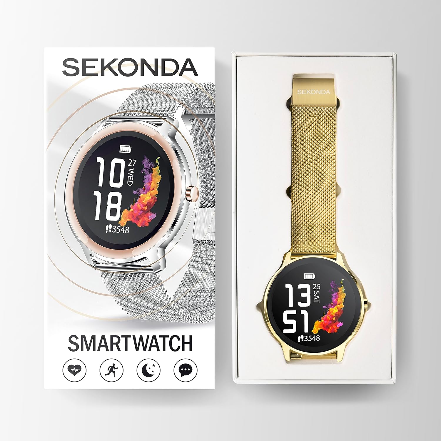 Sekonda Flex Womens 42mm Smart Watch with Heart Rate and Sleep Monitor, Daily Activity, Sports, Music, Weather & Message Functions, with Mesh Strap
