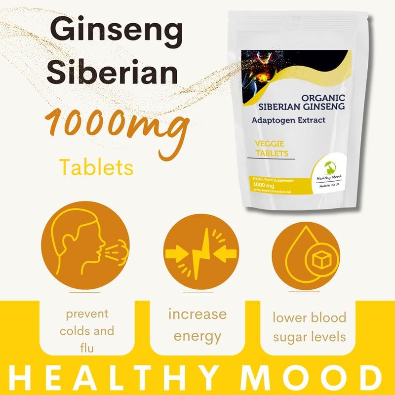 Siberian Ginseng Adaptogen Extract 1000mg 7 Tablets – High Potency Stress Relief, Energy Boost & Immune Support Supplement