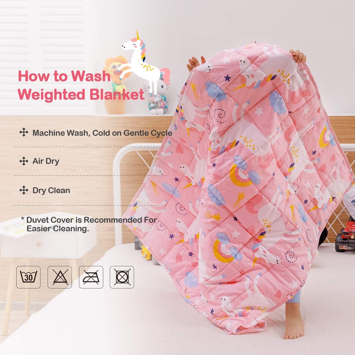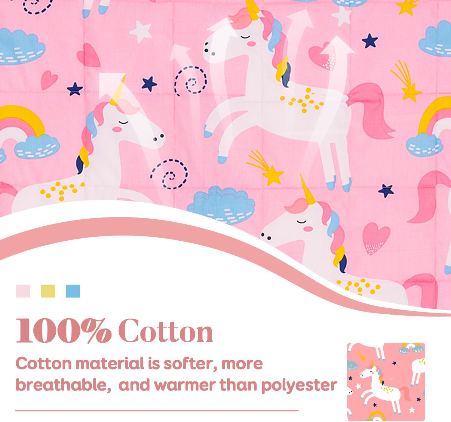 Sivio Weighted Blanket | 100% Cotton & Premium Glass Beads | 36″x 48″ 5lbs | Washable Breathable Heavy Cooling Blanket for Hot & Cold| Pink Unicorn