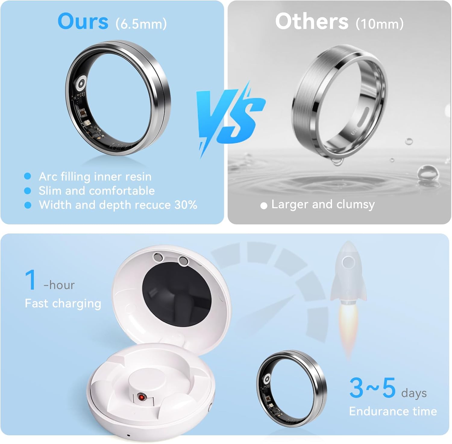 Lightweight design with 5ATM waterproof rating for all-day comfort.