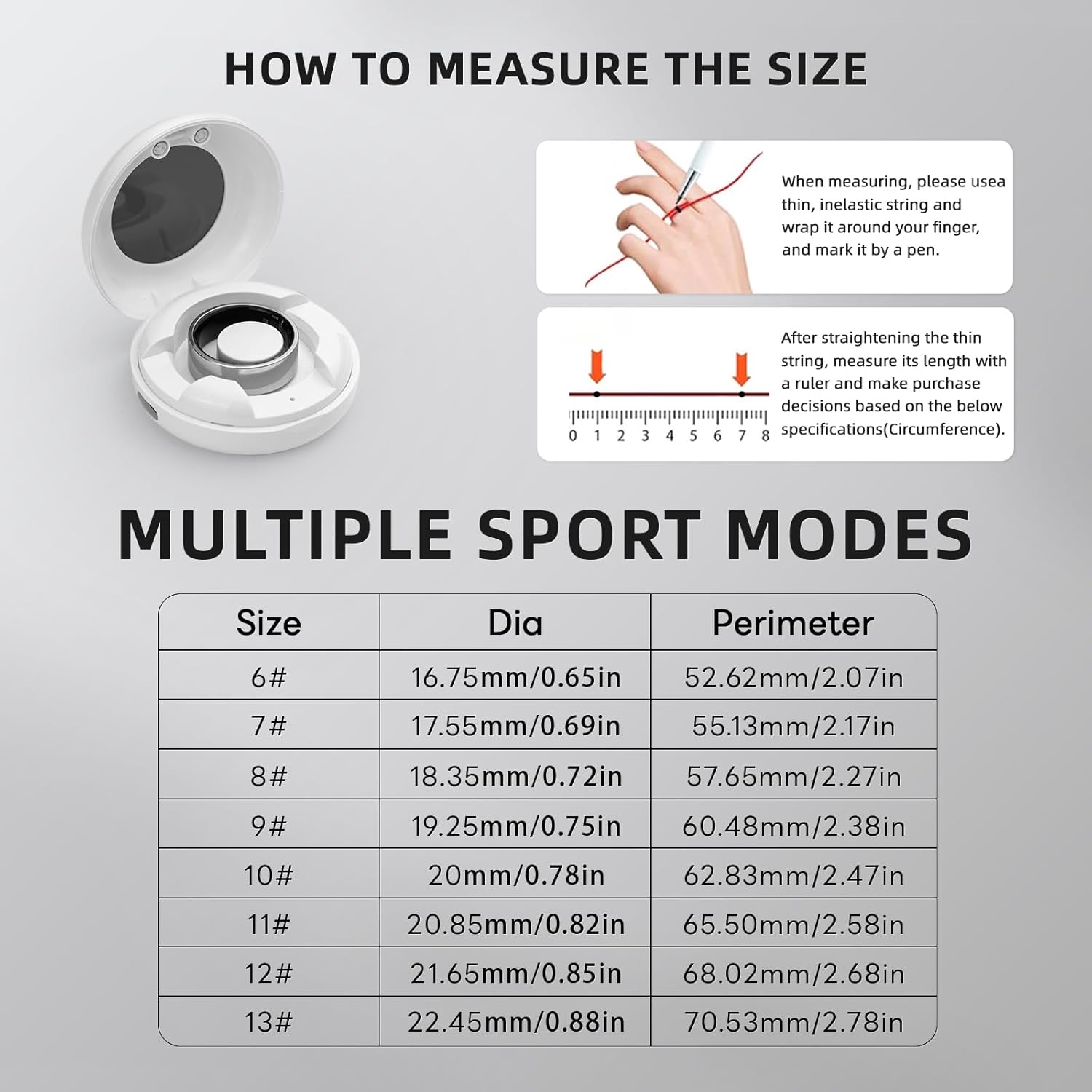 Smart Ring Health Tracker/Men’s and Women’s Health Rings/Multi-Motion Mode for Men and Women, No Subscription Fee, for iPhone and Android (Silver, 12)
