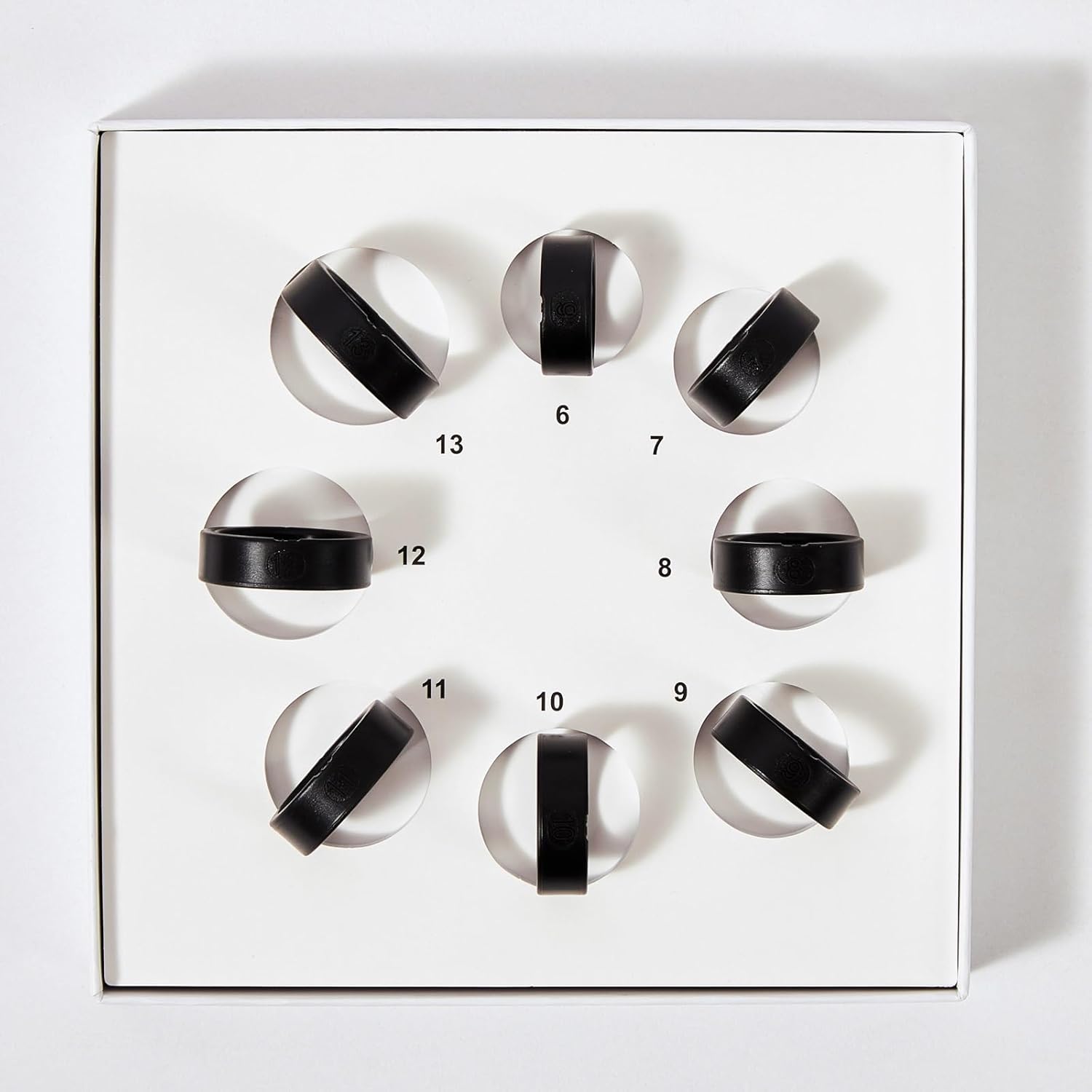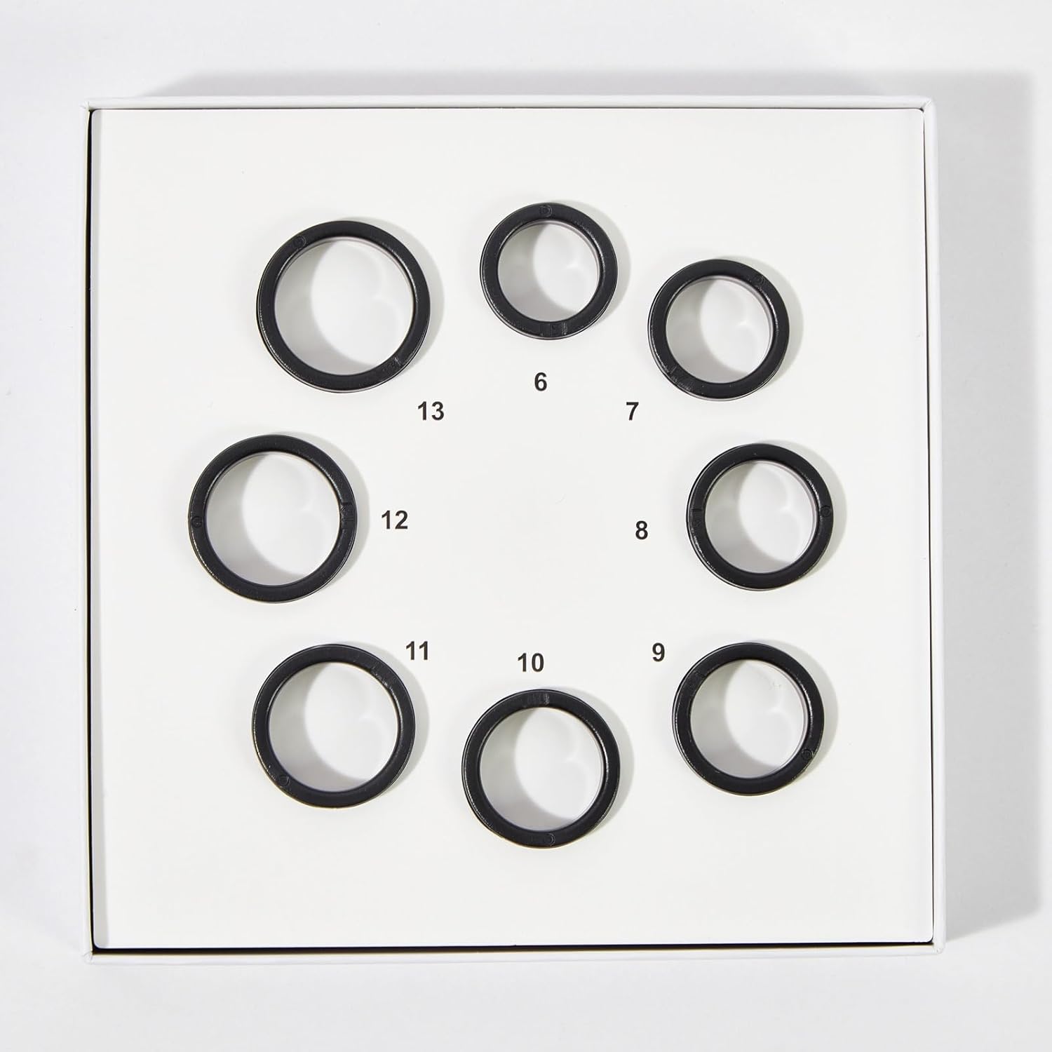 The Ring Sizing Kit includes 8 different sizing options, allowing you to choose from sizes 6 to 13 to find the perfect fit for your finger.