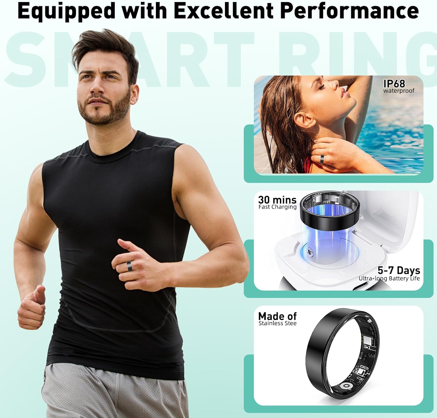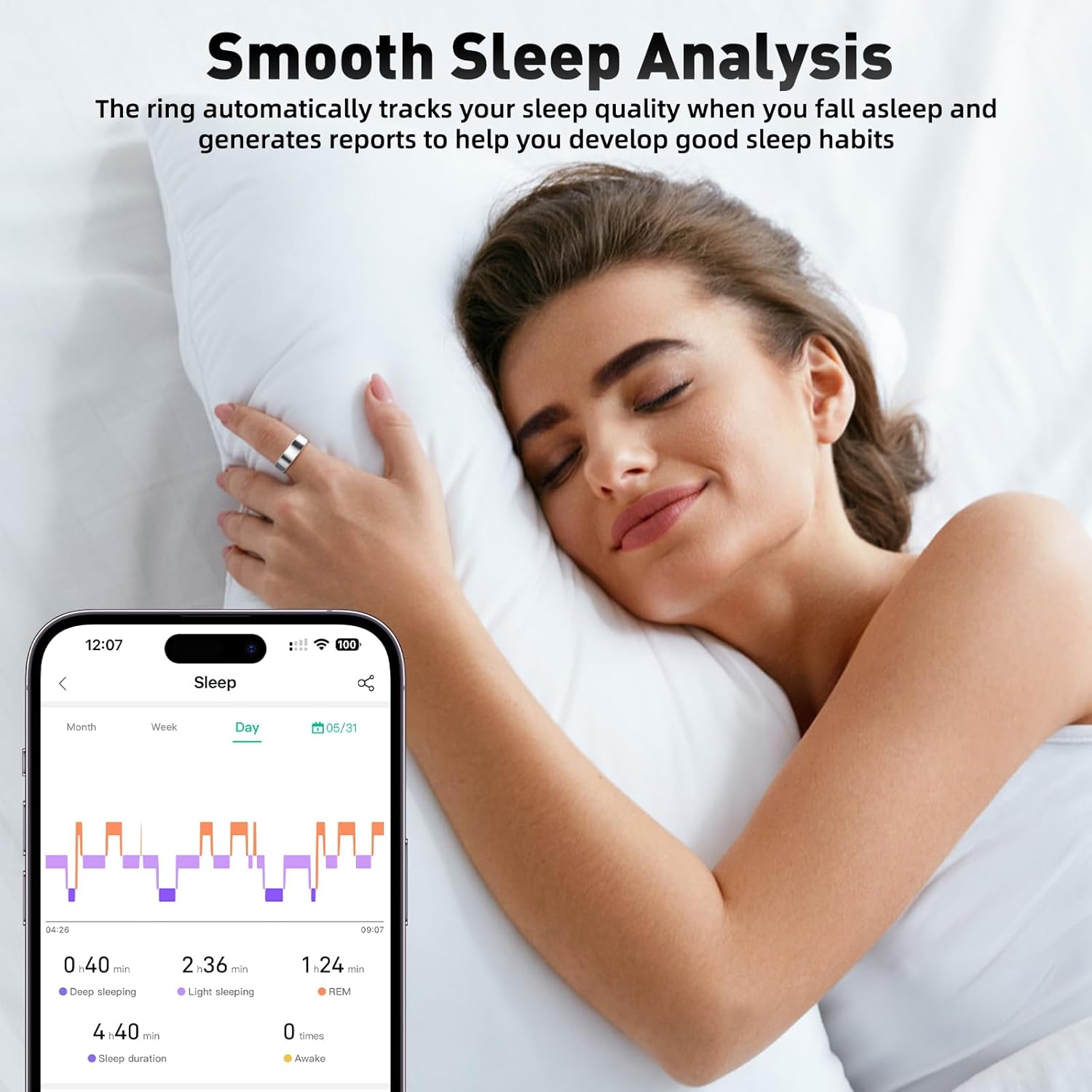 Smart Ring with Sleep Monitoring, Step Counting, Heart Rate, Blood Oxygen for iOS and Android, No Subscription Fee, IP68 Waterproof Health Tracker (Silver, 10)