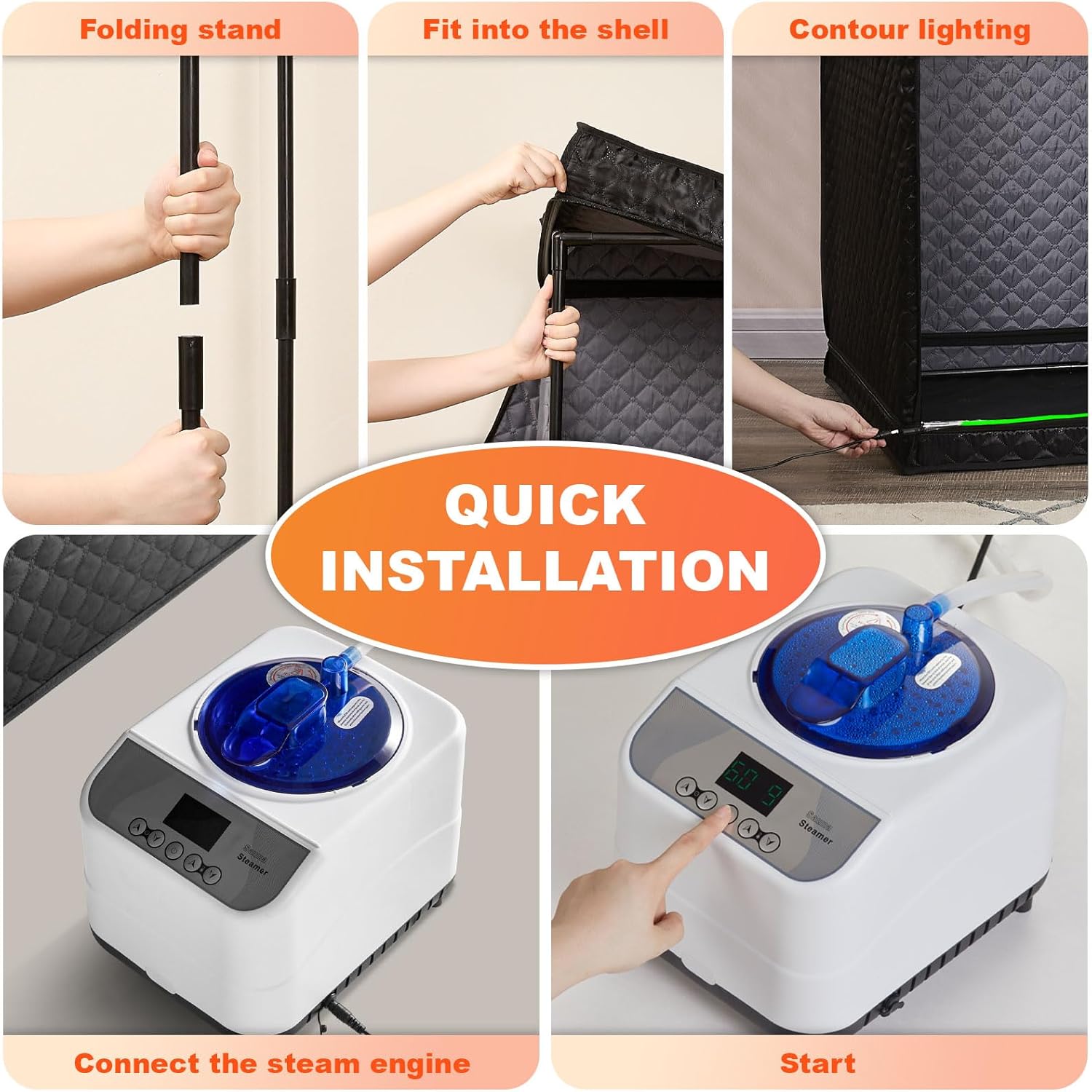 Transform your home into a relaxing spa with the Portable Infrared Steam Sauna Tent. This sauna features a spacious design that allows for full-body coverage, promoting detoxification, relaxation, and improved circulation. Built with a durable 5-layer waterproof and heat-insulating structure, it ensures efficient heat retention and safety during your sessions. The high-performance steam generator quickly produces soothing steam, making it ideal for easing muscle tension and rejuvenating your skin.