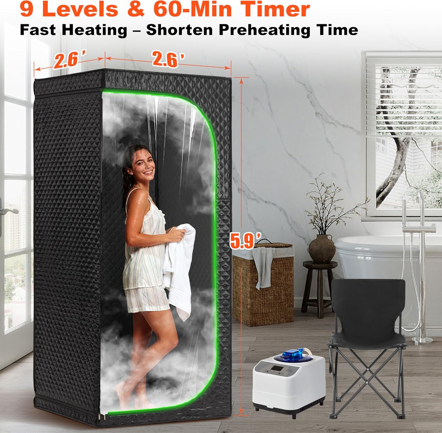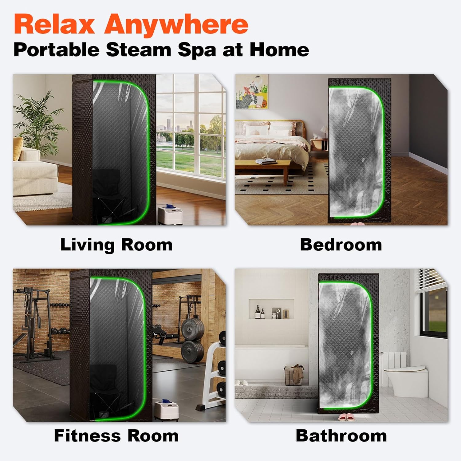 Steam Sauna Tent for Home, Portable Indoor Sauna with Powerful Steam Heating, Foldable Personal Spa for Relaxation & Recovery (Single Rectangular, Black)