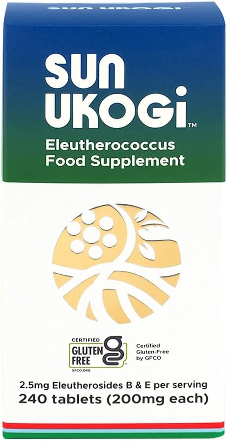 Sun Chlorella Sun Ukogi Eleuthero Root is a natural adaptogen supplement designed to support well-being and endurance. Each tablet contains 200 mg of Eleuthero root, known for its potential to help the body adapt to stress. This product is Non-GMO and comes in a convenient bottle of 240 tablets, providing a long-lasting supply.