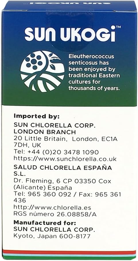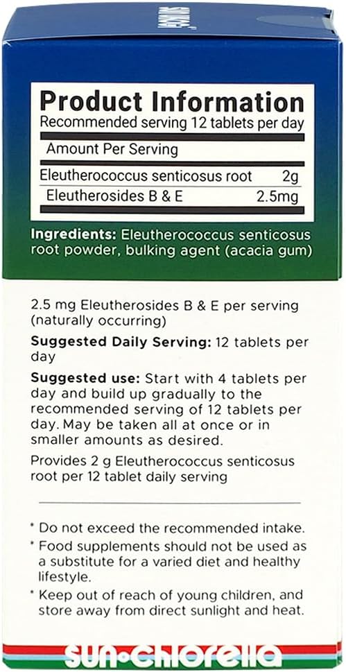 Sun Chlorella Sun Ukogi Eleuthero Root 200 mg – Natural Adaptogen Well Being & Endurance Supplement – Non-GMO – 240 Tablets, 8g