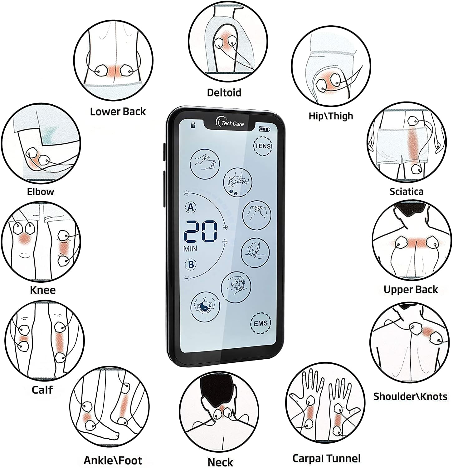 TechCare Massager Muscle Stimulator – Tens Unit 24 Modes, Touch Screen EMS Pulse Massager