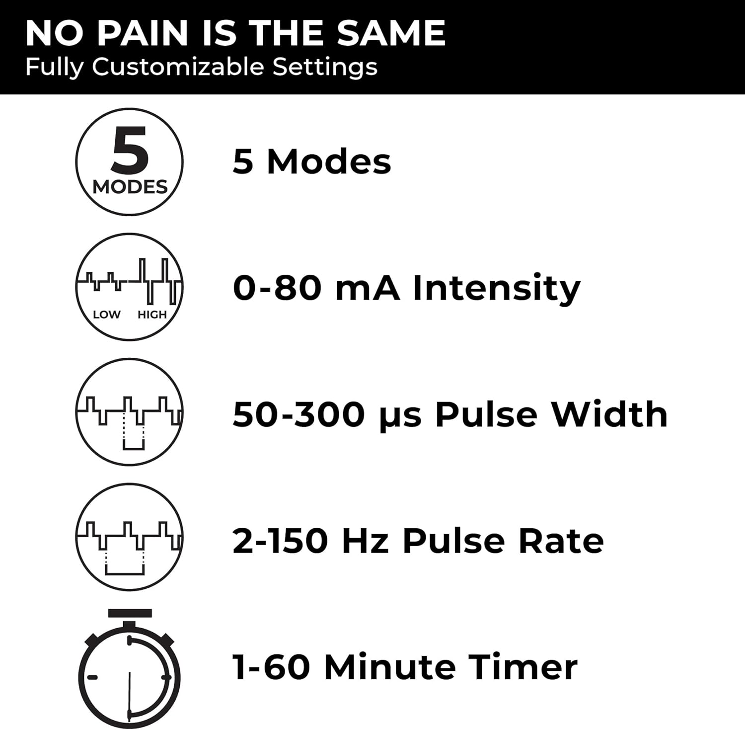 - Multiple settings for customized relief