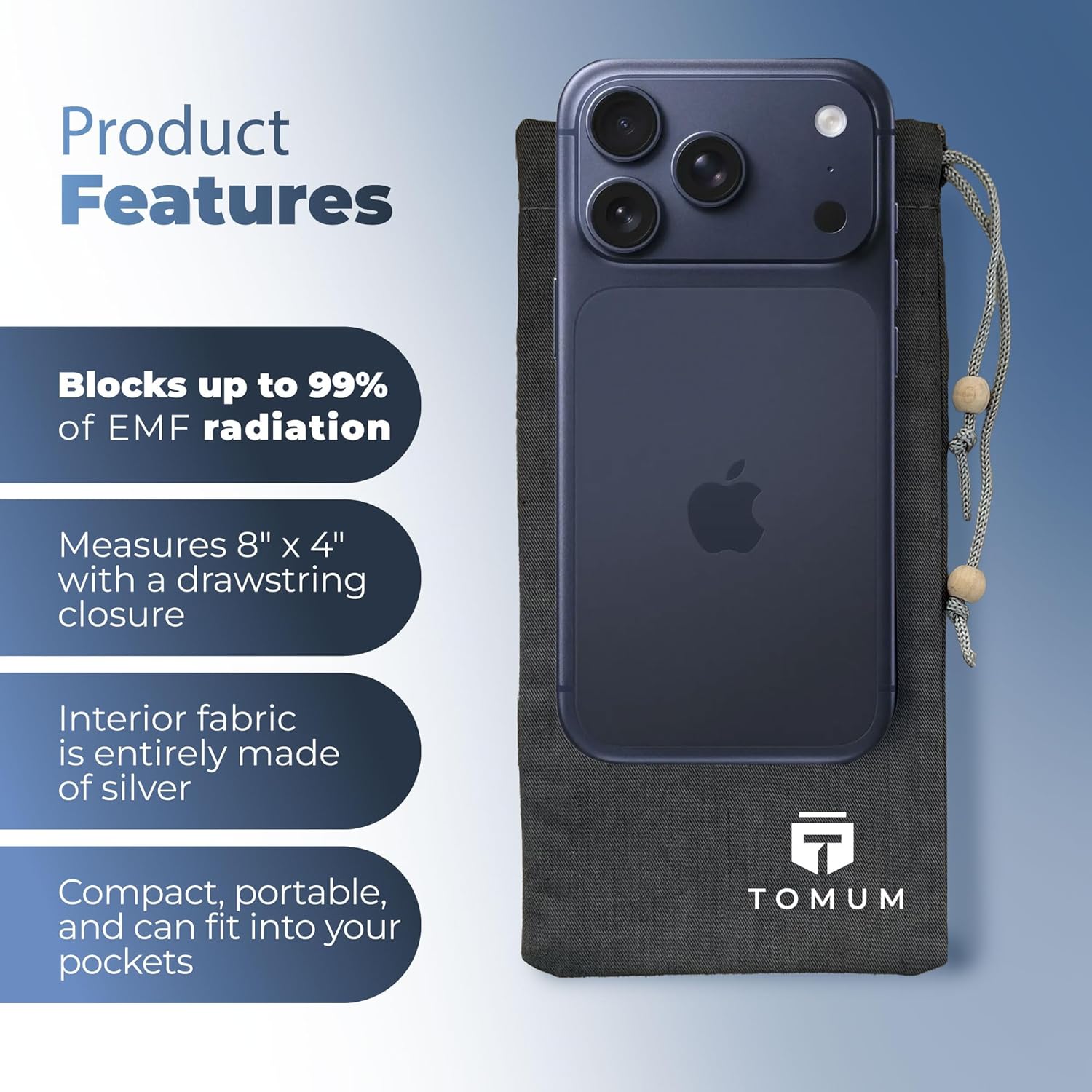 The TOMUM EMF Shield Sleeve for Cell Phone offers effective protection against harmful electromagnetic signals. Made from durable cloth and lined with anti-radiation material, this pouch is designed to fit most smartphone brands and accessories. Its sleek, unisex design makes it a stylish choice for anyone looking to reduce their exposure to EMF radiation. The convenient drawstring opening allows for easy sealing, ensuring your device is securely protected.