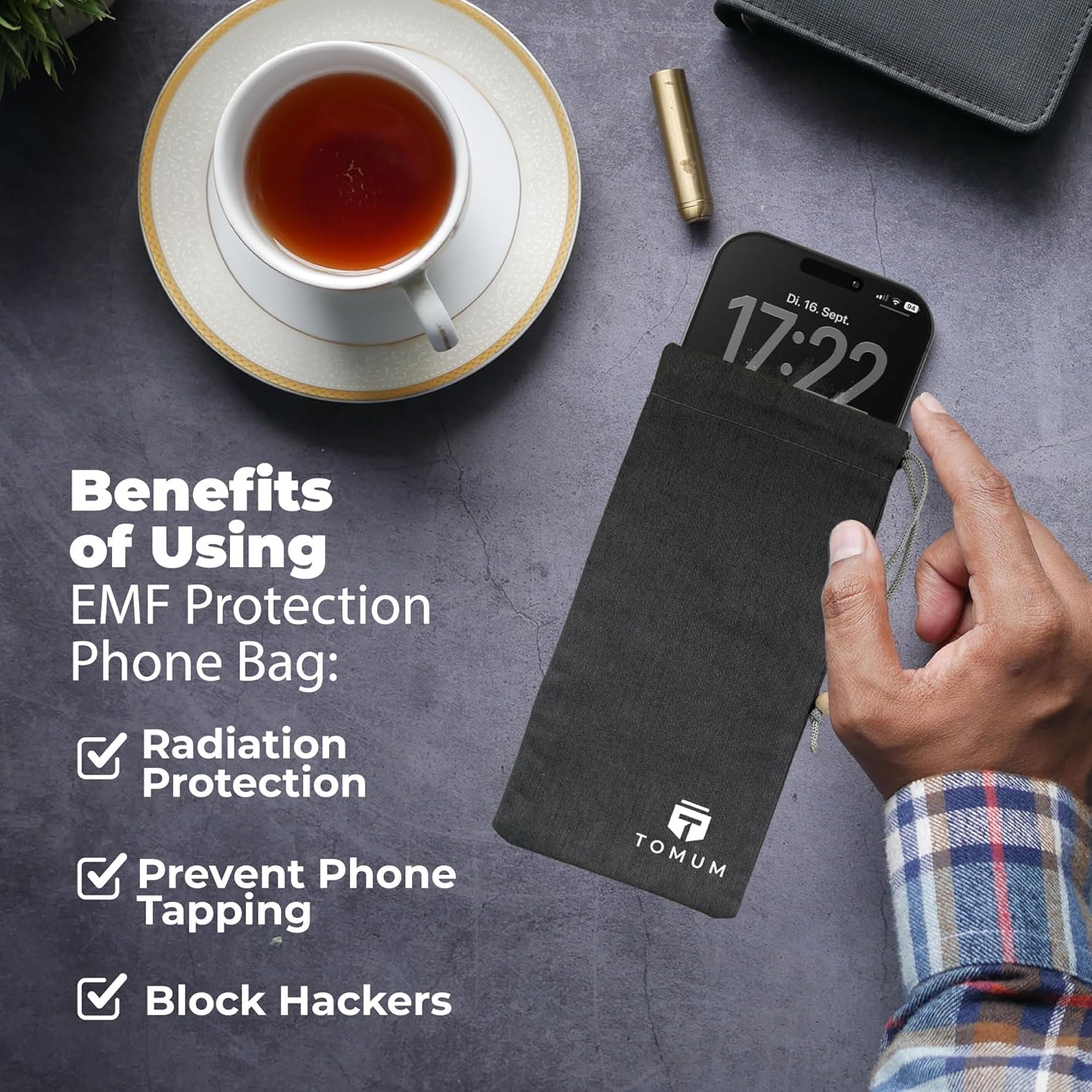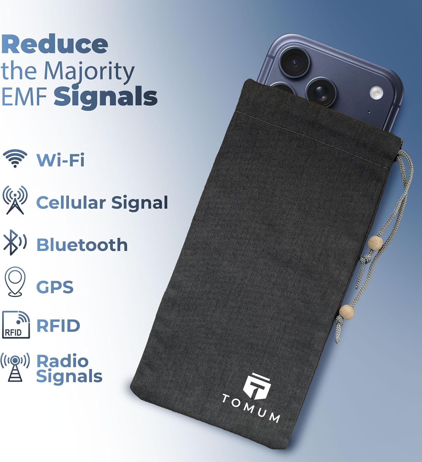 TOMUM EMF Shield Sleeve for Cell Phone – EMF Protection Smartphone Pouch – Anti EMP Bag – Signal Blocking Case for Radiation EMF EMP 5G RFID (Black, 1 Pack)