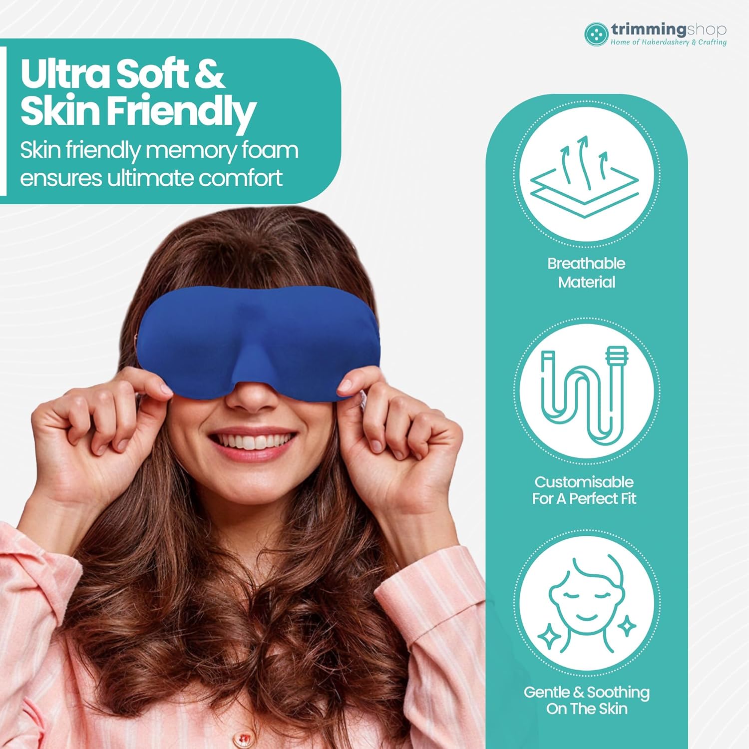 The Trimming Shop 3D Sleep Eye Mask is designed to provide a comfortable and restful sleep experience. Made with soft materials, this luxury blindfold effectively blocks out light, making it ideal for travel or home use. The adjustable strap ensures a secure fit for both men and women, accommodating various head sizes. This mask is not only practical but also stylish in a serene lake blue color.