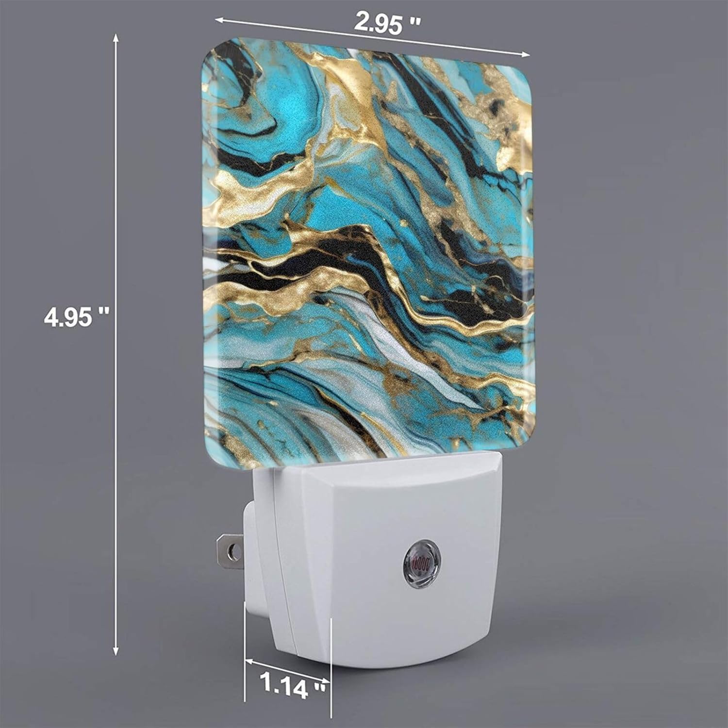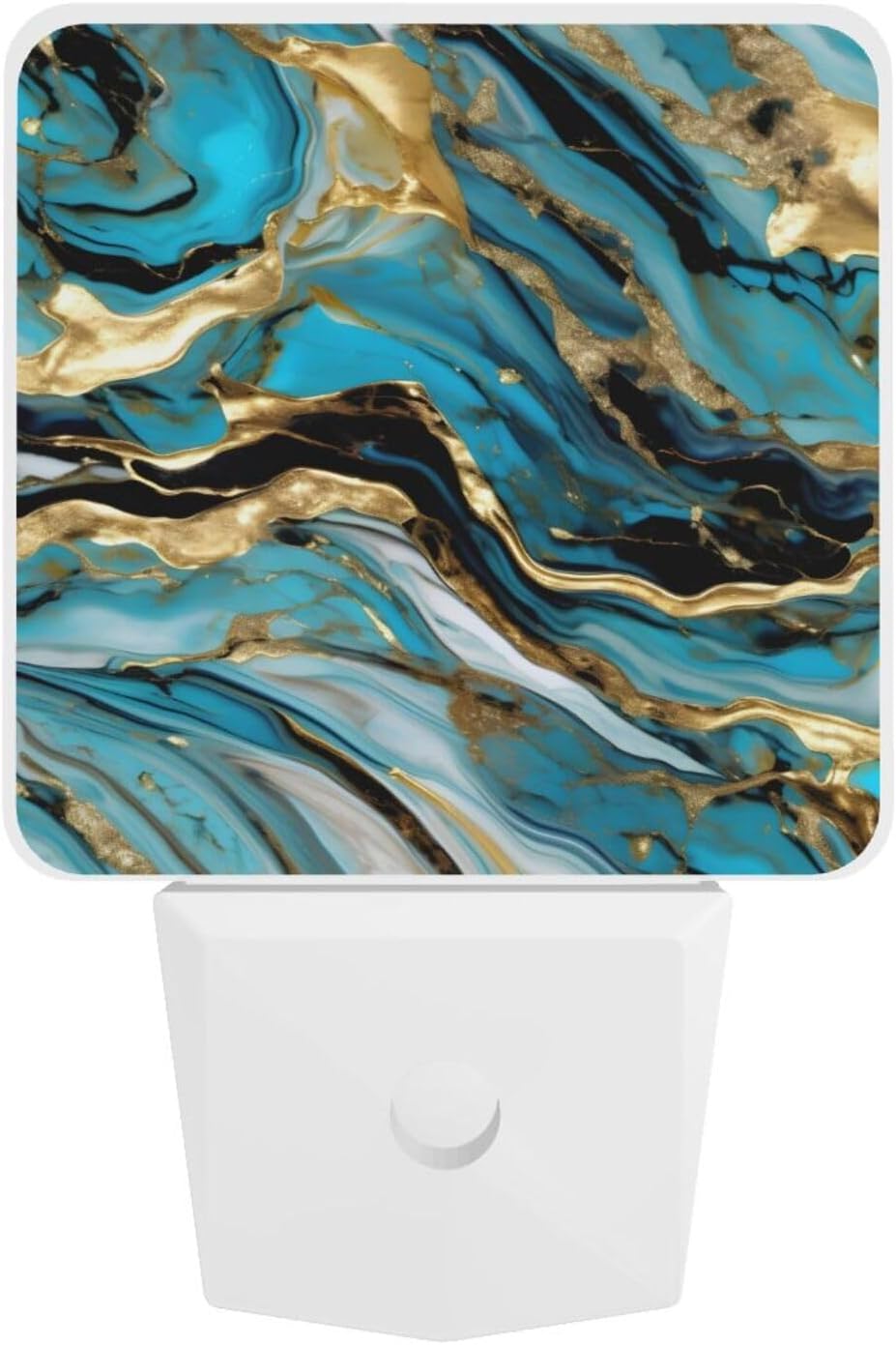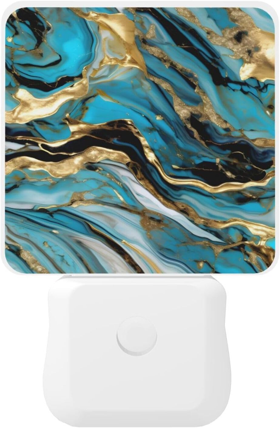 Enhance your home's comfort and safety with the Turquoise Blue Gold Marble Print Night Light. This compact, sensor-activated LED night light is designed for effortless plug-in use, providing soft, glare-free illumination in a warm white tone. It automatically turns on in the dark and off at sunrise, ensuring maximum efficiency without any hassle.
