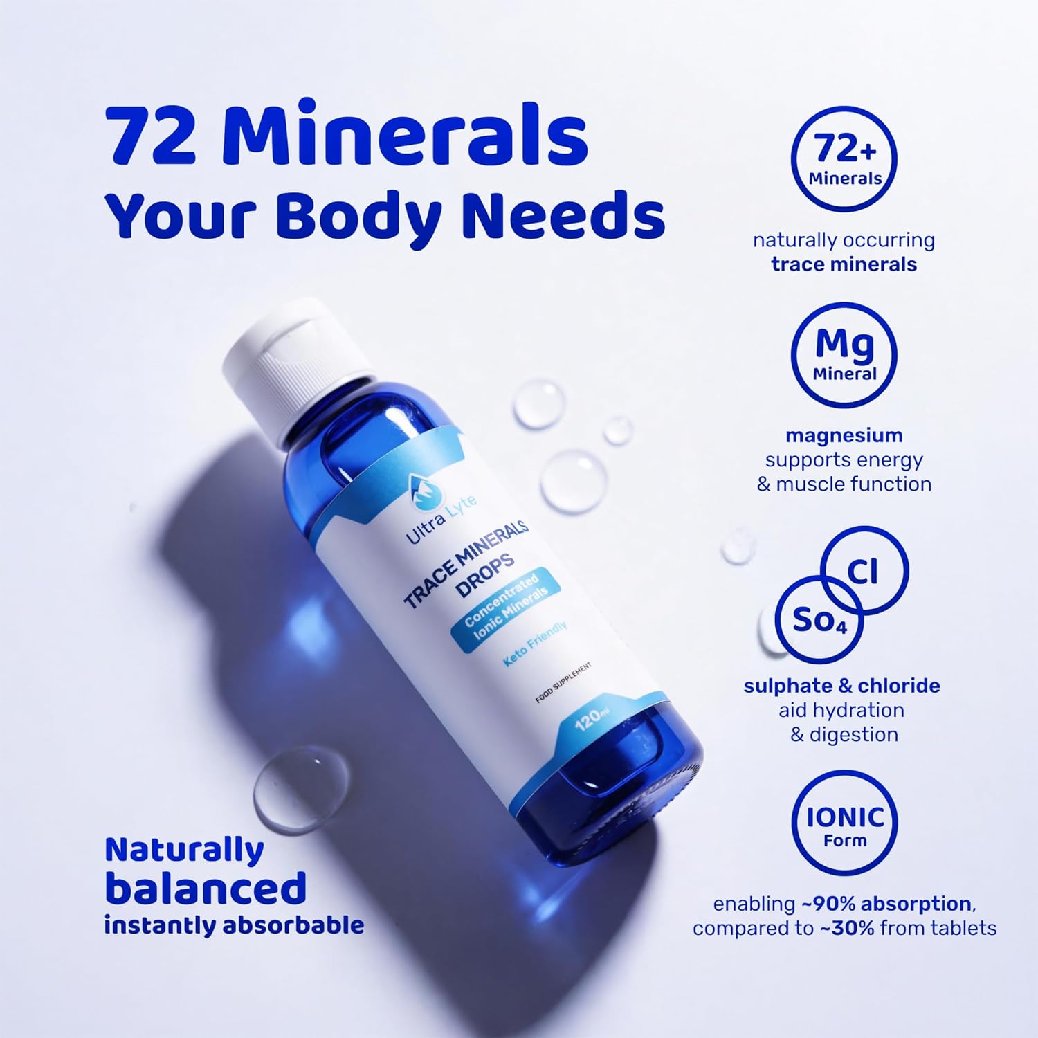 Ultra Lyte Trace Mineral Drops are designed to replenish and revitalize your body with essential minerals. This all-natural supplement contains 72 trace minerals that support hydration and overall well-being. Ideal for those who lead active lifestyles, these drops can easily be added to water or other beverages for a convenient boost. Each 118 ml bottle provides a 48-day supply, making it a practical choice for daily use.