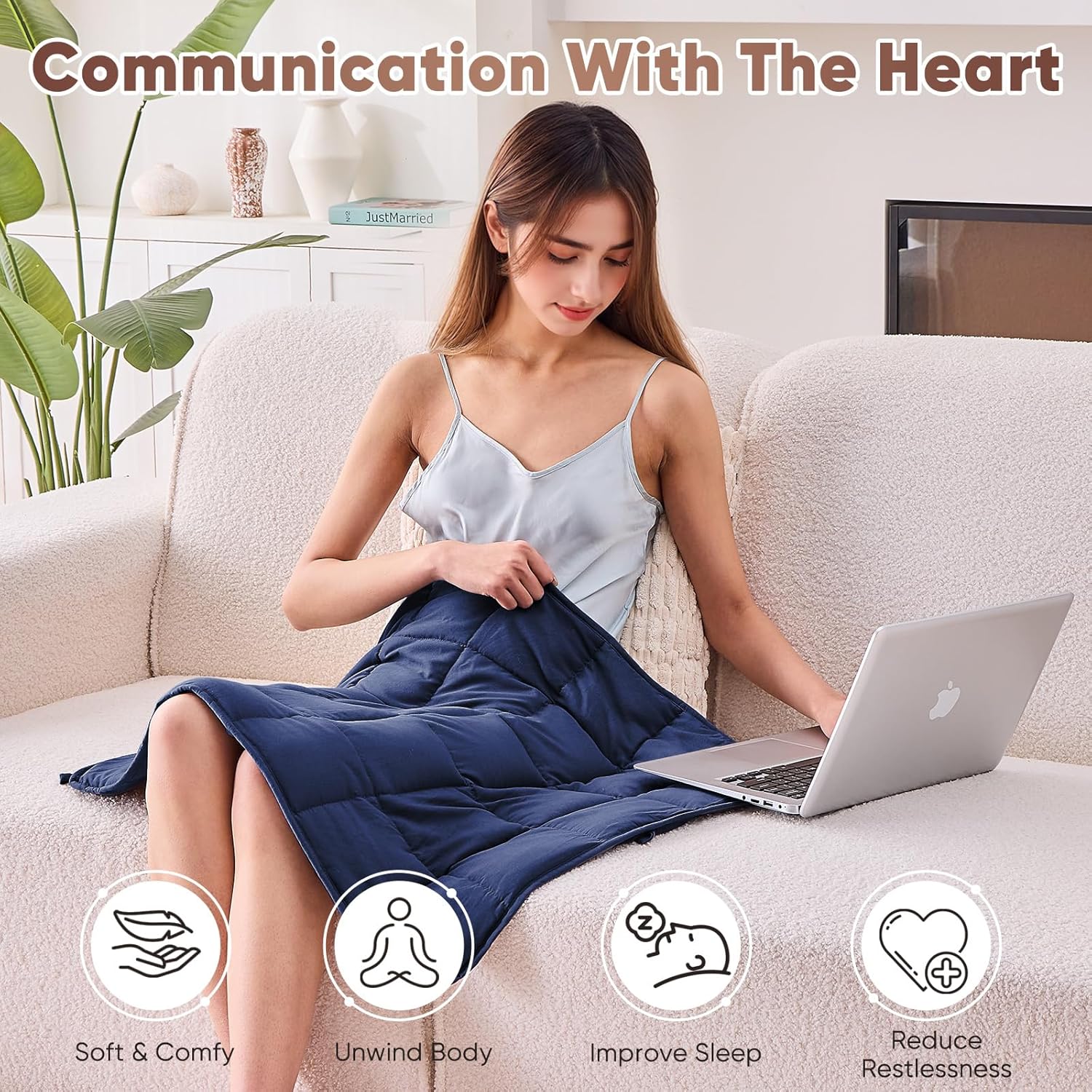 A weighted blanket provides a comforting hug-like sensation that can help you feel more relaxed and fall asleep easier.