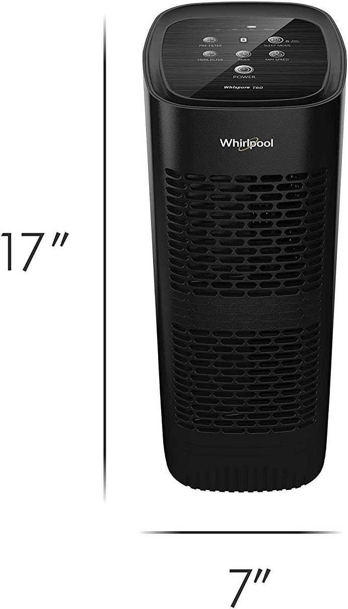 Whirlpool WPT60B, Air Cleaner Purifier – Whispure Medium Tower with True HEPA Filter (1183600) & Whishield Anti-bacteria Pre-filter (817600), 120 sq ft – Capture Allergies, Odor, Germs – Slate Black
