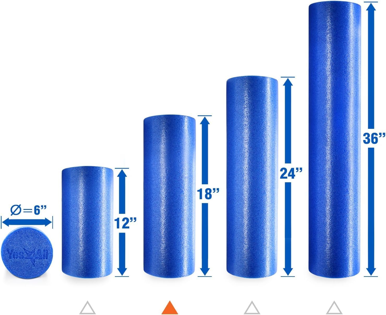 Yes4All Medium Firm Round PE Foam Roller 30, 45, 60, 90 cm for Pilates, Yoga, Stretching, Balance & Core Exercises