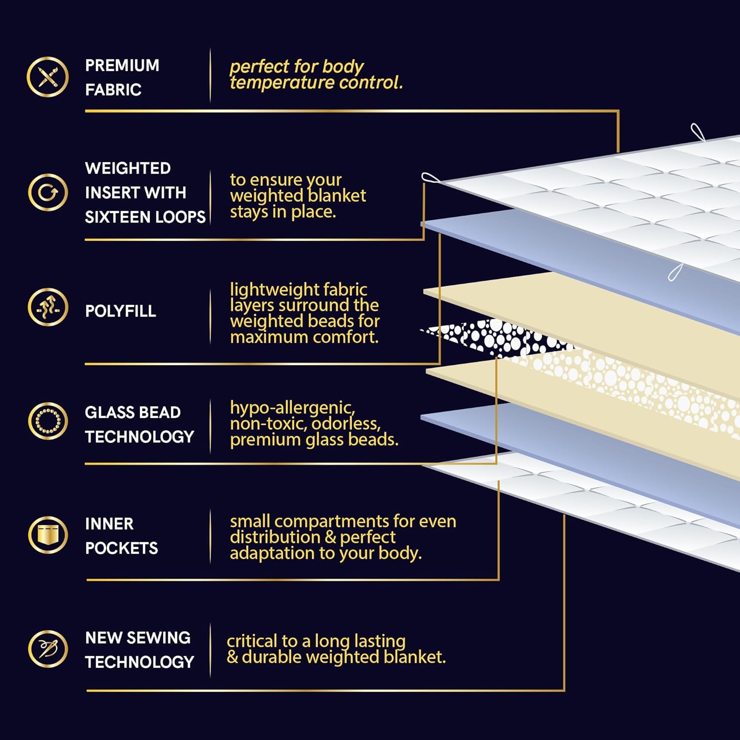 The YnM Exclusive 15lbs Weighted Blanket is designed to provide a comforting embrace, helping adults who struggle with restlessness at night. Its seven-layer construction features glass beads secured in small compartments, ensuring even weight distribution without shifting. This blanket is ideal for individuals weighing around 140lbs, making it perfect for twin or full beds. The premium fabric offers exceptional softness, enhancing your relaxation experience.