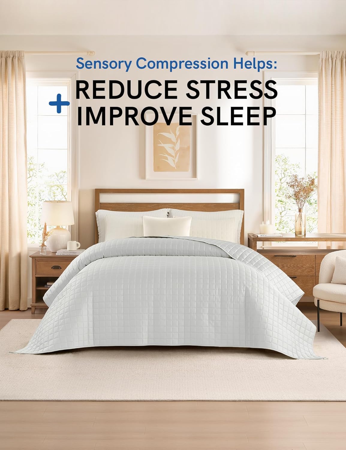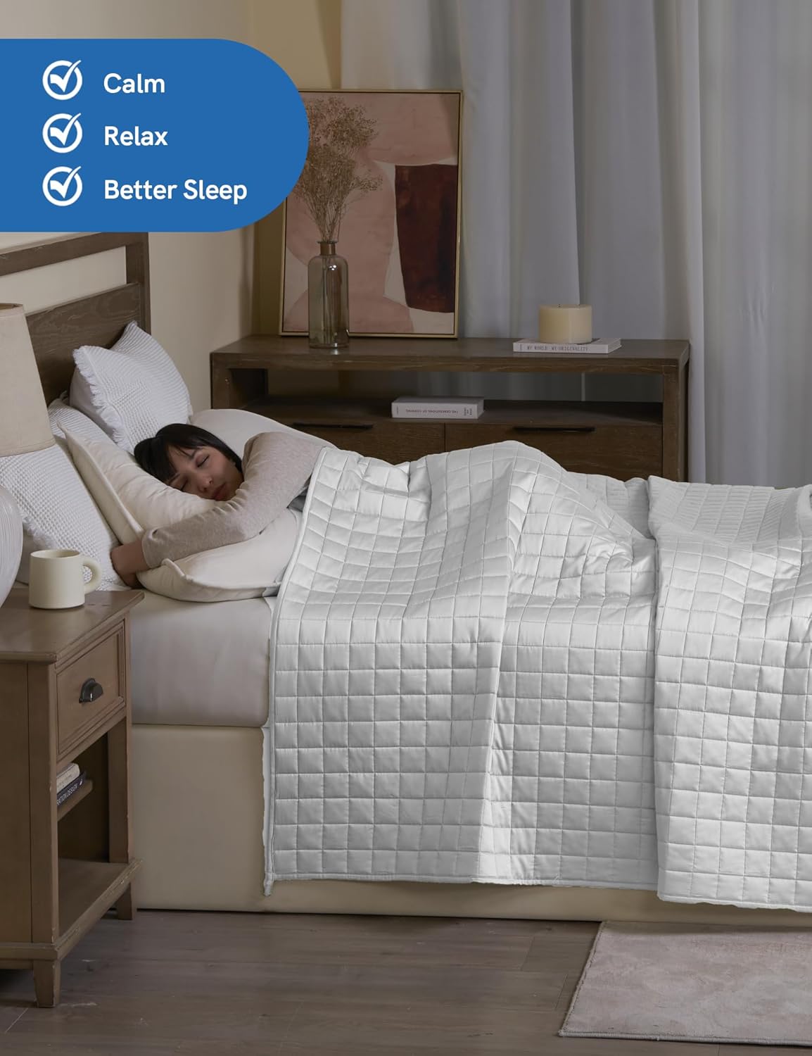 The YnM Exclusive Cooling Weighted Blanket is designed to provide a comforting embrace for restful sleep. Made with bamboo viscose, this blanket is both soft and breathable, making it ideal for year-round use. The innovative 7-layer design features the smallest compartments at 2x2 inches, ensuring even weight distribution across the body. This weighted blanket is perfect for individuals weighing around 140 lbs and fits well on twin or full beds (48x72 inches). The use of glass beads instead of fiberfill enhances temperature regulation, allowing for a cooler sleep experience.