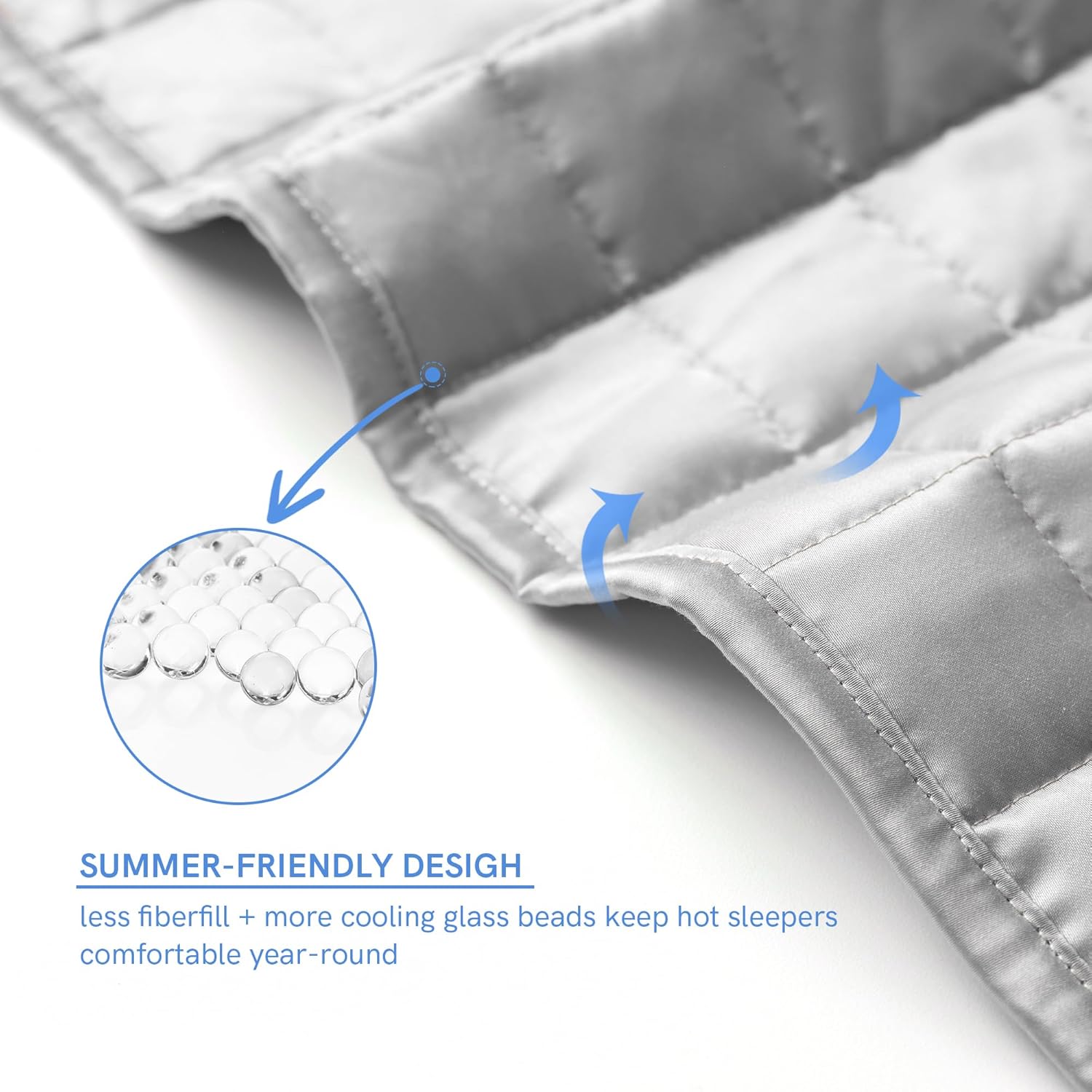 YnM Exclusive Cooling Weighted Blanket with Bamboo Viscose, Smallest Compartments with Glass Beads, Bed Blanket for One Person of 140lbs, Ideal for Twin/Full Bed (48×72 Inches, 15 Pounds, Light Grey)