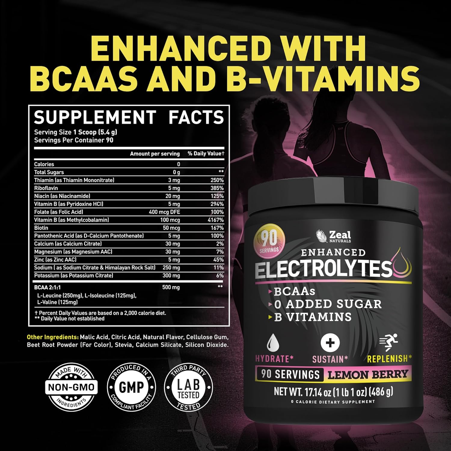 Zeal Electrolyte Powder – 90 Servings | Keto Electrolytes Powder | Zero Sugar, BCAAs, B-Vitamins | Potassium, Zinc, Magnesium | Hydration Powder Recovery Drink | Lemon Berry