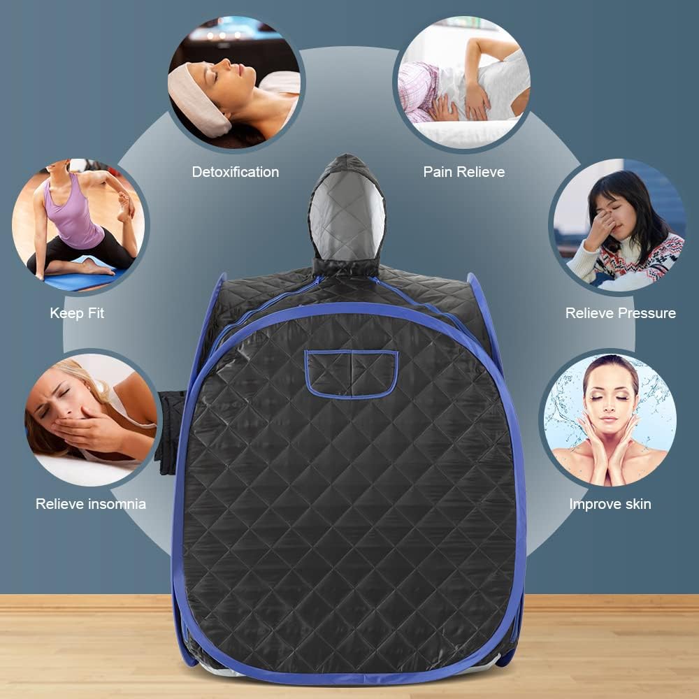 The ZONEMEL Portable Steam Sauna offers a convenient way to enjoy a sauna experience at home. With a compact design, it is suitable for one or two people, making it versatile for personal use or sharing. The sauna features a 2L steam generator that heats up in just 5 minutes, reaching a maximum temperature of 113°F (45°C). The double-sided zipper allows for easy access, while arm holes let users read or use their phone comfortably. Cleanup is straightforward; simply wipe down the interior after use.